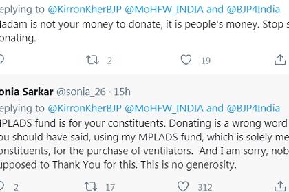 लोकांचा पैसा, लोकांसाठीच खर्च करण्याला दान म्हणत नाही, असे लोकांनी त्यांना सुनावले. अनेक सोशल मीडिया युजर्सनी किरण व अनुपम यांना तुम्ही स्वत:च्या खिशातून किती दान केलेत, असा सवालही केला. किरण यांच्याशिवाय अनुपम खेर यांनाही लोकांनी जबरदस्त ट्रोल केले.