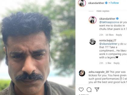दिग्दर्शक अपूर्व लाखियाने सिकंदरच्या या पोस्टवर जबरदस्त कमेंट केली. ‘सर, अमिताभ बच्चननंतर मी आणखी कोण्या बिझी अॅक्टरला ओळखतो तर तो तू आहेस,’ असे अपूर्वने लिहिले. यावर सिकंदरने लगेच उत्तरही दिले. ‘सर क्या आप चाहते हैं की मैं चुल्लू भर पानी में डुब जाऊं,’ असे सिकंदर यावर म्हणाला. अभिनेता अंगद बेदीने सिकंदरच्या पोस्टवर खूपसारे स्माईली पोस्ट केलेत.