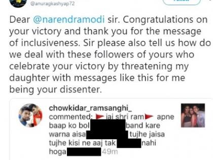 यापूर्वी अनुराग कश्यपने एक स्क्रीन शॉट शेअर केला होता. यात एका युजरने अनुरागच्या मुलीला बलात्काराची धमकी दिली होती.