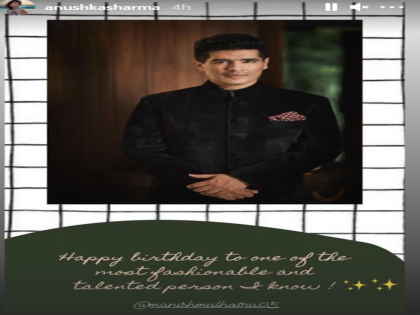 अनुष्का शर्माशिवाय करिष्मा कपूर, रिद्धिमा कपूर, आदित्य शेट्टी, कतरिना कैफ, आलिया भट्ट, मलायका अरोरा आणि पुनीत मल्होत्रा यांनीही मनीष मल्होत्राला वाढदिवसाच्या शुभेच्छा दिल्या आहेत.