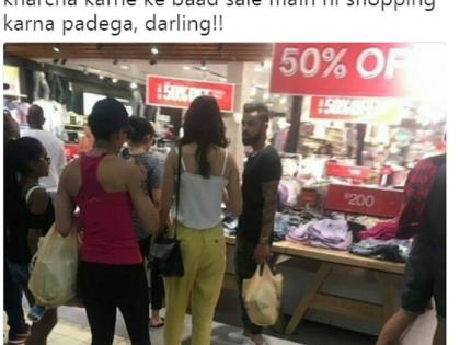म्हणजेच. दुकानात सेल लागलाय आणि याठिकाणी विरूष्का शॉपिंग करत आहेत. याचमुळे चाहत्यांनी विरूष्काला टार्गेट केले आहे. ट्रोलर्सनी विरूष्काच्या या शॉपिंग फोटोवर अनेक मजेशीर कमेंट्स दिल्या आहेत. यातील अनेक कमेंट्स वाचून तुम्ही पोट धरून हसाल, यात शंका नाही.