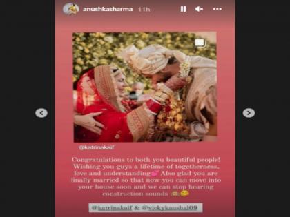 अनुष्काने कतरिना व विकीला लग्नाच्या शुभेच्छा देत एक इन्स्टा स्टोरी शेअर केली आहे. (Anushka Sharma confirmed Katrina-Vicky will be her neighbours)