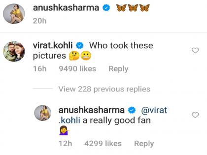 तूर्तास अनुष्काच्या फोटोवरची एक कमेंट सर्वांचं लक्ष वेधून घेतेय. होय, अनुष्काच्या सुंदर फोटोंवर विराटनं कमेंट केलीय आणि त्याच्या या कमेंटला अनुष्कानं तेवढंच खास उत्तर दिलंय.