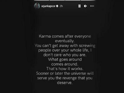 ‘प्रत्येकाला आपल्या कर्माची फळ मिळतात. आयुष्यभर तुम्ही इतर लोकांशी वैर करू शकत नाही. तुम्ही कोण आहात? याचा मला फरक पडत नाही. तुम्ही जसं वागणार तसंच तुम्हाला सगळं परत मिळणार. उशीरा का हाईना ब्रम्हांड तुम्हाला तुमच्या कर्माची फळं देणारच....,’अशा आशयाची इन्स्टा स्टोरी अर्जुनने आज शेअर केली. अर्जुन कपूरचा राग अद्यापही शांत झालेला नाही, हेच त्याच्या या पोस्टवरून वाटतंय.