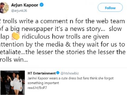 ‘ट्रोलर्सने फोटोबद्दल लिहिले आणि तुम्ही त्याची एक मोठी बातमी बनवली़ मीडिया ट्रोलर्सला कशापद्धतीने चालना देतोय, हे अतिशय लज्जास्पद आहे,’ असे अर्जुनने लिहिले.