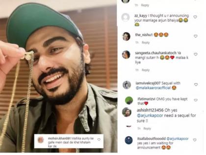 अर्जुनने खरे तर ‘की अॅण्ड का’ या सिनेमाला 5 वर्षे पूर्ण (5YearsOfKiandKa) झाल्यानिमित्त ही पोस्ट टाकली. पण युजर्सनी या पोस्टचा संबंध मलायकाशी जोडला. हे मंगळसूत्र मलायकासाठी तर नाही ना? असा सवाल एका युजरने त्याला केला. अन्य एका युजरने, ‘की अॅण्ड का’च्या सीक्वलमध्ये करिना नको, मलायका हवी, असे लिहिले. हे मंगळसूत्र मलायकाच्या गळ्यात बांध आणि संपव, अशी कमेंट एका युजरने केली.
