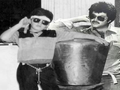 पहिला फोटो अर्जुनच्या लहानपणीचा आहे आणि त्याच्यासोबत त्याचा आवडता चाचू नाही. यात अनिल एकदम यंग दिसतोय.