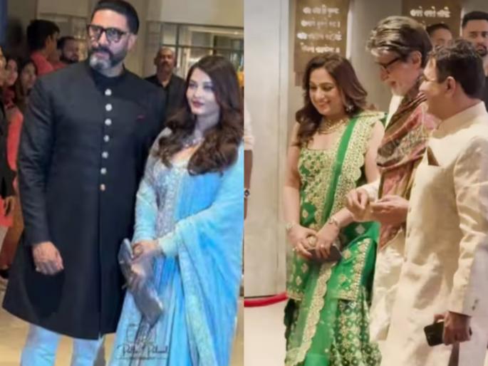 या सोहळ्याचे मुख्य आकर्षण ठरले ते म्हणजे बच्चन कुटुंब. सुपरस्टार अमिताभ बच्चन आणि जया बच्चन यांनी लग्नाला उपस्थिती लावली. मात्र, त्यांनी पापाराझींसमोर पोझ देणे टाळले आणि बाहेर उपस्थित असलेल्या काही लोकांशी संवाद साधून ते थेट हॉटेलच्या आत गेले. दुसरीकडे ऐश्वर्या राय बच्चन आणि अभिषेक बच्चन यांनी मात्र पापाराझींना आनंदाने पोझ दिल्या. यावेळी हे दोघेही नेहमीप्रमाणे 'स्टनिंग' दिसत होते.