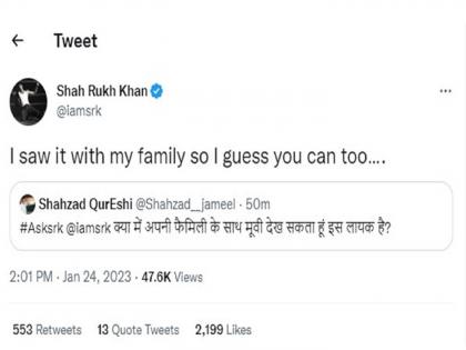 अशाच एका सेशनमध्ये एका चाहत्याने 'पठाण'च्या रिलीजच्या तोंडावर एक प्रश्न केला आणि शाहरूखने त्यावर कडक उत्तर दिलं. 'पठाण' कुटुंबासोबत पाहू शकतो का, सिनेमा त्या लायकीचा आहे का?, असा प्रश्न या चाहत्याने केला. यावर शाहरूखने त्याच्या शैलीत उत्तर दिलं. मी माझ्या कुटुंबासोबतच सिनेमा पाहिला, मला वाटतं तू पण बघू शकतोस..., असं उत्तर शाहरूखने दिलं.