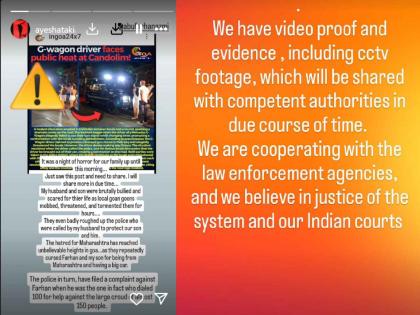 आयशा टाकियाने इन्स्टाग्रामवर स्टोरी शेअर करत लिहिले, "आमच्यासाठी ती रात्र खूपच भयावह होती. माझ्या पतीविरोधातील बातम्या पाहून आता मला हे सांगणं खूप गरजेचं वाटतं. यापुढे मी आणखीही माहिती देईनच. माझ्या पतीला आणि मुलाला स्थानिकांकडू वाईट भाषेत धमकावण्यात आलं. त्यांना साहजिकच आपल्या जीवाची काळजी होती. कित्येक तास स्थानिक गुंड त्यांना धमकावत होते, त्यांना घेराव घातला होता. माझ्या पतीने फोन करुन पोलिसांना बोलवलं तर त्यांनी पोलिसांनाही त्रास दिला. गोव्यात महाराष्ट्राविरोधात मोठा द्वेष निर्माण झाला आहे. महाराष्ट्रीय आहे आणि मोठी गाडी आहे हे पाहून त्यांनी सतत फरहान आणि माझ्या मुलाला डिवचलं, शिव्या दिल्या."