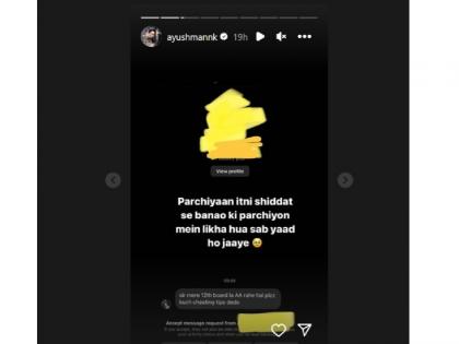 "सर, माझी १२वी ची बोर्डाची परिक्षा जवळ येत आहे. कृपया, कॉपी करण्यासाठी काही टिप्स द्या", असा मेसेज चाहत्याने केला होता. चाहत्याच्या या अजब मागणीला आयुष्मानने हटके उत्तर दिलं आहे. "कॉपीच्या चिठ्ठ्या इतक्या मनापासून बनवा की चिठ्ठीमध्ये लिहिलेलं सगळं लक्षात राहील," असा रिप्लाय अभिनेत्याने दिला आहे. आयुष्मानने त्याच्या इन्स्टाग्रामवरुन ही स्टोरी शेअर केली आहे.