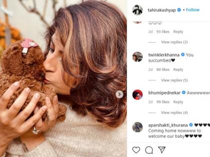 ‘आमच्या कुटुंबातील नवीन सदस्य. ही एक मुलगी आहे आणि तिचे नाव पीनट आहे...,’ अशी पोस्ट ताहिराने शेअर केली.