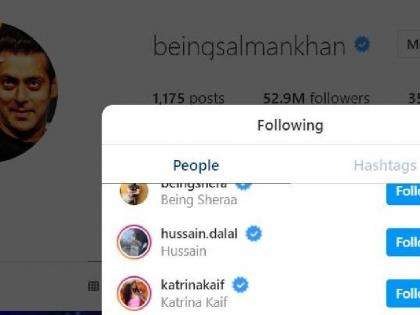 सलमान खान इन्स्टाग्रामवर केवळ 35 जणांना फॉलो करतो. यात त्याच्या दोन एक्स गर्लफ्रेंडचाही समावेश आहे. संगिता बिजलानी आणि कतरिना कैफ या दोघींना फॉलो करतो.