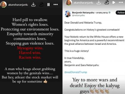 दरम्यान आज अमेरिकेच्या निवडणूकांचा निकाल लागला. डोनाल्ड ट्रम्प कमला हॅरिसचा पराभव करत राष्ट्राध्यक्ष पदावर विराजमान झाले. अमेरिकेतली अनेक सेलिब्रिटींनी कमला हॅरिसलाच पाठिंबा दिला होता. ट्रम्प यांच्या विजयावर आकांक्षाने नाराजी दर्शवत लिहिले, "हे पचवणं कठीण आहे. महिलांच्या अधिकारांची हार, पर्यावरणाच्या संरक्षणाची हार, अल्पसंख्यांकांसाठीच्या सहानुभूतीची हार, हिंसाचारावर प्रतिबंधाची हार. दुराचरण, द्वेष आणि वंशवाद जिंकला. महिलांवर आक्षेपार्ह टिप्पणी करणारा माणूस जिंकला. पण असो, स्टॉक मार्केट काही काळासाठी तरी वर येईल."