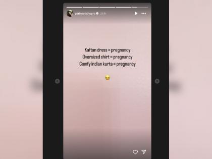 परिणीतीने तिच्या इन्स्टाग्राम स्टोरीमध्ये एक पोस्ट शेअर केली आहे. या पोस्टमध्ये तिने सोशल मीडियावर होत असलेल्या चर्चांवर स्पष्टीकरण दिलं आहे. “काफ्तान ड्रेस = प्रेग्नंसी, ओव्हरसाईज शर्ट = प्रेग्नंसी आणि कॉम्फी इंडियन कुर्ता = प्रेग्नंसी”, असं म्हणत तिने यावर हसण्याची इमोजी शेअर केली आहे.