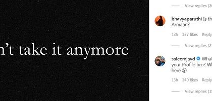 होय, आय कान्ट टेक इट एनीमोअर, (आता आणखी सहन करू शकत नाही)अशी एक ओळ लिहिलेला फोटो त्याने शेअर केला. पण त्यापूर्वी इन्स्टावरच्या सर्व पोस्ट डिलीट केला. इतकेच नाही तर डीपी सुद्धा ब्लॅक केला. एकाचवेळी इतक्या सगळ्या निगेटीव्ह गोष्टी पाहून साहजिकच अरमानला अचानक झाले तरी काय? असा प्रश्न चाहत्यांना पडला.