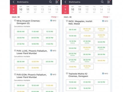 अंधेरी येथील सिनेपोलिस थिएटरमध्ये 'ब्रह्मास्त्र'चे १४ शो आहेत. त्यातील सकाळी ९ वाजताच्या शोची जास्त तिकिटं विकली गेली आहेत. मात्र, बाकीच्या शोची बरीच तिकिटं शिल्लक आहेत. घाटकोपर येथील पीव्हीआरमध्ये १० शो आहेत. तिथे अद्याप तिकिट विक्रीला फारसा प्रतिसाद मिळताना दिसत नाहीये. फोर्ट येथील स्टर्लिंग थिएटरमध्येही तिकिट विक्री थंडच दिसतेय. लोअर परेल येथील पीव्हीआरमध्ये ॲडव्हान्स बुकिंग हळूहळू वाढताना दिसत आहे.