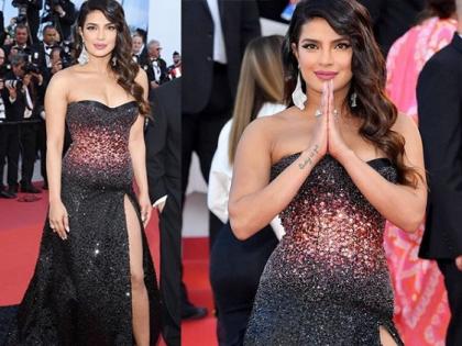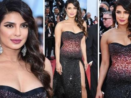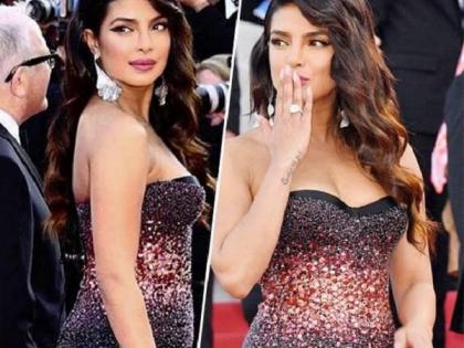 काल गुरुवारी प्रियंका चोप्रानेकान्स फिल्म फेस्टिवल 2019च्या रेड कार्पेटवर ग्लॅमरस एन्ट्री घेतली. शिमरी ब्लॅक आणि मरून कलचा थाई हाईस्लिट गाऊनमध्ये रेड कार्पेटवर उतरलेल्या प्रियंकाने सगळ्यांना प्रभावित केले. मोकळे केस, पिंक लिपस्टिक आणि न्यूड मेकअप अशा अवतारात प्रियंका रेड कार्पेटवर उतरली. तिचा हा लूक चाहत्यांना भावला. पण रेड कार्पेटवरील तिचे फोटो पाहून सोशल मीडियावर एक नवी चर्चा सुरु झाली.
