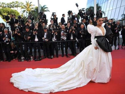 कान्स फिल्म फेस्टिव्हल 2019साठी दीपिकाने पीटर डंूडासने डिझाईन केलेल्या आॅफ व्हाइट कलरच्या डीप नेक गाऊनची निवड केली. तिच्या या ड्रेसचे मुख्य आकर्षण होते, ते त्यावरचा ब्लॅक बो.