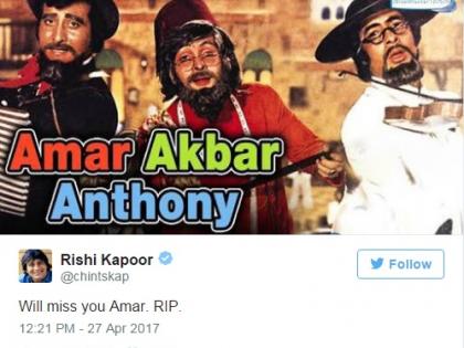 माझा प्रिय मित्र विनोद खन्ना...तुझी खुप आठवण येईल. मी त्याच्या कुटुंबियांचे सांत्वन करतो. त्यांच्या दु:खात सहभागी आहे.