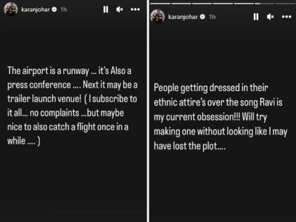 करण जोहरने आज इन्स्टास्टोरीवर एकूण ६ पोस्ट शेअर केल्या आहेत. ज्यामध्ये चित्रपट निर्मात्याने कंगना रणौतचे नाव न घेता तिच्यावर टीका केली आहे, ज्यानंतर लोकांनी या गोष्टी अभिनेत्रीसाठी लिहिल्याचा अंदाज लावला आहे. करण जोहरने इन्स्टाग्राम स्टोरीवर लिहिले की, 'विमानतळ एक धावपट्टी आहे. ही देखील पत्रकार परिषद आहे. पुढे हा ट्रेलर लॉन्च इव्हेंटचे ठिकाण देखील असू शकतो. मी या सर्वांचे सदस्यत्व घेऊ इच्छितो. तक्रार नाही. परंतु कधीकधी फ्लाइट पकडणे देखील चांगले असते.
