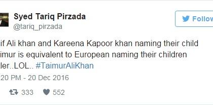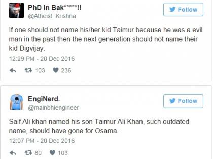 आपल्या मुलाचं नाव कुणी हिटलर ठेवतं का? नाही ना.. तैमूर हे नाव हिटलरपेक्षा कित्येक पटीनं वाईट आणि क्रूर समजलं जातं. इस्त्राईल किंवा युरोपातही कुणी मुलाचं नाव हिटलर ठेवत नाही. ट्विटरवर अनेकांनी याविषयी ट्विट केलेले दिसतेय.
