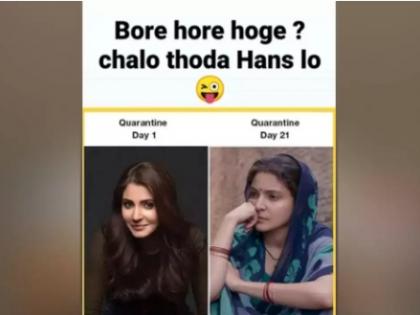 या मीममध्ये दोन फोटो आहेत. एक ग्लॅमरस आणि दुसरा ‘सुई धागा’ या चित्रपटातील लूकचा. ग्लॅमरस फोटो म्हणजे, लॉकडाऊनचा पहिला दिवस आणि ‘सुई धागा’मधील फोटो म्हणजे, लॉकडाऊनच्या 21 व्या दिवशी झालेली स्थिती, असे हे मजेदार मीम आहे. ‘बोर हो रहे होंगे, चलो थोडा हंस लो,’ असे हे मीम शेअर करताना अनुष्काने लिहिले आहे.