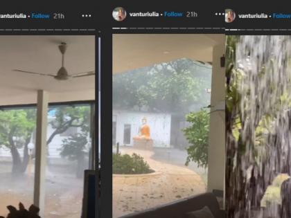 निगर्स चक्रीवादळादरम्यान मुसळधार पावसाचा फोटो तिने शेअर केला आहे. शिवाय फार्महाऊसवर विंचू आढळल्याचे सांगत त्याचाही एक फोटो तिने शेअर केला आहे.