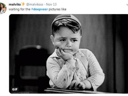 एका युजरने एका मुलाचा फोटो शेअर करत, आपली नाराजी व्यक्त केली आहेत. या फोटोत हा मुलगा उदास बसलेला दिसतोय. याच्या कॅप्शनमध्ये दीपवीरच्या फोटोच्या प्रतीक्षेत असे लिहिण्यात आले आहे.