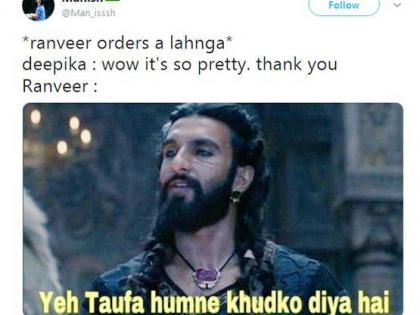 रणवीरच्या ‘पद्मावत’मधील एका डायलॉगवरूनही भन्नाट मीम्स बनवण्यात आले आहेत.