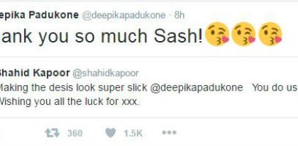 द पिका पादुकोण व रणवीर सिंह यांच्यात सध्या काहीही ‘आॅल-वेल’नाही, ही खबर तर तुमच्यापर्यंत पोहोचलीच आहे. दीपिकाच्या दुर्लक्षितपणामुळे रणवीर नाराज असल्याचे कळतेयं. आता या नाराजीत आणखी भर पडण्याची भीती आम्हाला सतावतेय. होय, दीपिका व शाहीद कपूर यांचा twitterवर रंगलेला संवाद बघून रणवीर नाराज होऊ शकतो. दीपिकाने अलीकडे सलमानच्या ‘बिग बॉस’मध्ये ‘ट्रिपल एक्स : रिटर्न आॅफ जेंडर केज’ या तिच्या पहिल्या-वहिल्या हॉलिवूडपटाचे ट्रेलर लॉन्च केले. या ट्रेलरमध्ये दीपिका जबरदस्त अॅक्शन अवतारात आहे. या ट्रेलरनंतर दीपिकावर कौतुकाचा वर्षांव होत आहे. शाहीदनेही हा ट्रेलर पाहिला आणि त्याने लगेच दीपिका twitterवर शुभेच्छा दिल्या. ‘ट्रिपल एक्समधील तुझा अभिनय बघून मला तुझा अभिमान वाटतोय...’असे शाहीदने म्हटले. शाहीदच्या या tweetला दीपिकाने लगेच उत्तर दिले. तिने केवळ शाहीदचे आभारच मानले नाहीत तर त्याला ‘साशा’(शाहीदचे निकनेम) असे संबोधले. शिवाय तीन ‘किस’ करणा-या ‘इमोजी’ही पाठवल्या. आता या ‘किस’ करणा-या ‘इमोजी’पाहून रणवीर भडकू नये म्हणजे झाले...!!