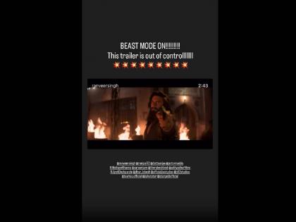'धुरंधर २'चा ट्रेलर आलियाने तिच्या इन्स्टाग्राम स्टोरीमध्ये शेअर केला आहे. ट्रेलर शेअर करत ती म्हणते, "बिस्ट मोड ऑन...हा ट्रेलर आऊट ऑफ कंट्रोल आहे". 'धुरंधर २'चा ट्रेलर पाहून आलियाची झोपच उडाली आहे. तिने खाली बॉम्बचे इमोजीही पोस्ट केले आहेत.
