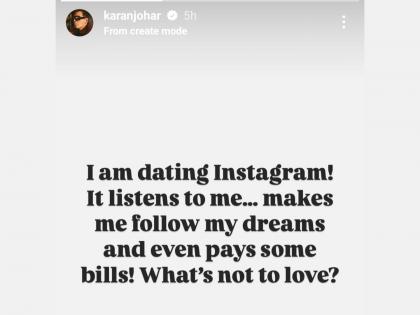 करण जोहरने इन्स्टाग्रामवर खुलासा केला की, "मी इन्स्टाग्रामला डेट करतोय. तो माझ्या सर्व गोष्टी ऐकतो. माझ्या स्वप्नांचा पाठलाग करायला तो शिकवतो याशिवाय माझी बिलंही तो चुकवतो. त्यामुळे त्याच्यावर प्रेम न करण्याचं कोणतंही कारण मला सापडत नाही." अशी पोस्ट करुन करण जोहरने सर्वांनाच चकीत केलंय. अशाप्रकारे करण जोहर कोणा व्यक्तीला डेट करत नसून इन्स्टाग्रामला डेट करतोय. करण जोहर सिंगल पॅरंट असून त्याला यश आणि रुही ही दोन मुलं आहेत.