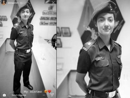 दिशाने यावेळी तिच्या बहिणीचा फोटो शेअर केला आहे. शेअर केलेला फोटोही खूप खास आहे. दिशाची बहिण भारतीय सैन्यात अधिकारी आहे. तिने बहिणीचा वर्दीमधील एक फोटो सोशल मिडियावर शेअर केला आहे. खुशबू असे तिच्या बहिणीचे नाव आहे. हा फोटो पाहून तमाम भारतीयांची मान अभिमानानं उंचावल्याशिवाय राहणार नाही. सध्या हा फोटो सोशल मीडियावर चांगलाच व्हायरल होत असून त्याला मोठी पसंती मिळत आहे. याआधीही दिशाने बहिणीसोबतचे अनेक फोटो शेअर केले आहेत. पण वर्दीतील बहिणीच्या या फोटोची बातच न्यारी आहे.