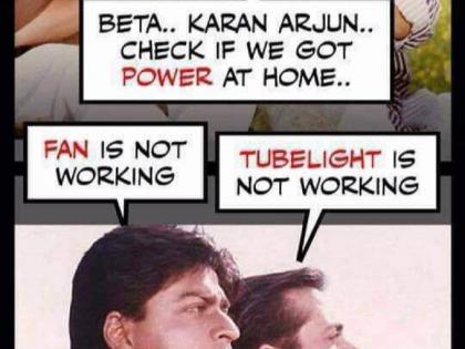 विशेष म्हणजे, सुक्यासोबत ओलेही जळते, त्याप्रमाणे सलमानसोबत शाहरूखवरही विनोद होत आहे. ‘ट्यूबलाईट’मुळे शाहरूखच्या ‘फॅन’चीही आठवण ताजी झाली आहे. ‘ट्यूबलाईट’च्या निमित्ताने सोशल मीडियावर पडलेले हे जोक्स वाचून आम्ही खूप हसलो, तुम्हीही हसल्याशिवाय राहणार नाहीत, हे आम्ही दाव्यानिशी सांगतो. तेव्हा वाचा आणि पोट धरून हसा!!