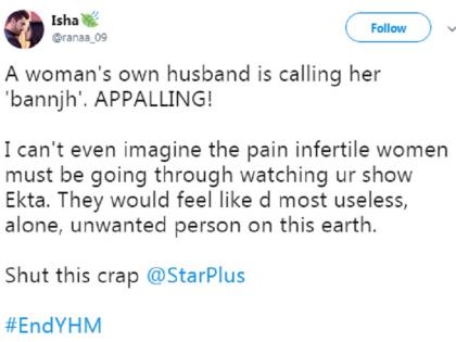 मी लोकांना सांगू इच्छिते की, एंडवायएचएम मोहिम चालवण्याऐवजी ही मालिका पाहणे बंद करा. सर्व कथा प्रेक्षकांच्या आवडीच्या हिशेबाने दाखवता येत नाहीत. मी माझ्या टीव्ही प्रेक्षकांवर प्रेम करते़ त्यांच्या विचारांचा आदर करते. पण आमचे रचनात्मक काम टीव्ही रेटींग आणि मापदंडांनी चालते. हा शो चाहत्यांसाठी आहे़ प्रेम आणि आदर नेहमीसाठी़...असे या मालिकेचा विरोध करणा-यांना एकताने बजावले आहे.