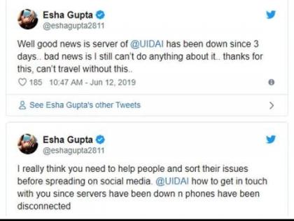 ‘चांगली बातमी ही आहे की, गत दिवसांपासून युआयडीएआयचे सर्व्हर डाऊन आहे आणि वाईट बातमी म्हणजे, त्यामुळे मी काहीही करू शकली नाही. आधारशिवाय मी माझा प्रवास करू शकत नाही, यासाठी आभार...,’असे ट्वीट तिने केले. ती इथेच थांबली नाही तर तिने एका पाठोपाठ एक असे अनेक ट्वीट केलेत. तिच्या या ट्वीटनंतर युआयडीएआय आपल्या ऑफिशिअल ट्वीटर हँडलवरून ट्वीट करत ईशाला तिची समस्या विचारली.