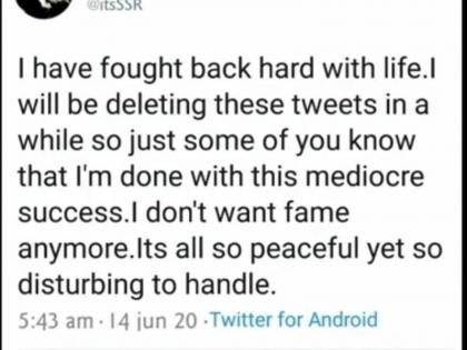 सुशांत सिंह राजपूतने आत्महत्या करण्यापूर्वी तसेच त्याच्या मनात सुरू असलेली घालमेल त्याने या ट्विटच्या माध्यमातून व्यक्तही केली होती.