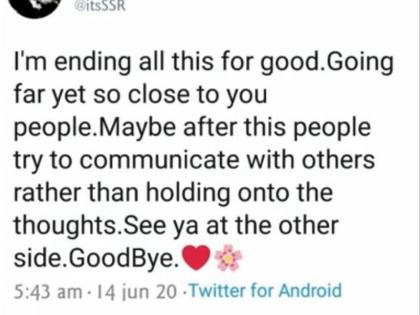 सध्या त्याचे हे शेवटचे ट्विट सोशल मीडियावर खूप व्हायरल होत आहे. खरंच हे ट्विट सुशांतने त्याच्या निधनापूर्वीच केले होते का ? याबाबत कोणतीही अधिकृती माहिती अद्याप समोर आलेली नाही. तसेच आजतकने टाकलेली बातमीही त्यांनी नंतर डिलीट केली असल्याचेही निदर्शनास आली आहे.