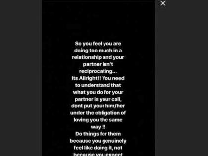 पुढच्या पोस्टमध्ये तो लिहितो, ‘तुम्हाला वाटते की, तुमच्या जोडीदाराने तुम्हालाही तशीच वागणूक द्यावी जशी तुम्ही त्याला देता, कारण तुम्ही त्या नात्यात आहात. पण कुणी तुमच्यासोबत चांगले वागत नाही आणि तरीही तुम्ही त्याच्यासोबत आहात तर ही तुमची चूक आहे. म्हणून स्वत:वर प्रेम करायला शिका.’