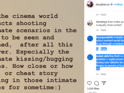 सुजीत सरकारच्या या पोस्टवर अनेक युजर्सनी भन्नाट प्रतिक्रिया दिल्यात. जुन्या चित्रपटांप्रमाणे फुलांच्या मागे, अगदी तसेच होईल, असे एक युजरने लिहिले. अन्य एका युजरने आणखीच मजेशीर कमेंट केली. असे सीन्स शूट करण्याआधी कदाचित कलाकारांची टेस्ट केली जाईल, असे त्याने लिहिले. एकंदर काय तर सुजीत सरकार यांनी चाहत्यांनी भलतीच मजा घेतली.