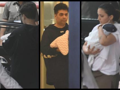 एका फोटोमध्ये करण त्याच्या एका मुलाला कड्यावर घेऊन जात आहे. तर इतर फोटोंमध्ये तो हॉस्पिटलमधून कारमध्ये बसताना दिसत आहे. दोनच दिवसांपूर्वी करणने ट्विट करून म्हटले होते की, लवकरच तो त्याच्या मुलांचे फोटोज् शेअर करणार आहे. योग्य वेळी तो त्याच्या मुलांची झलक त्याच्या फॅन्सला दाखविणार आहे.