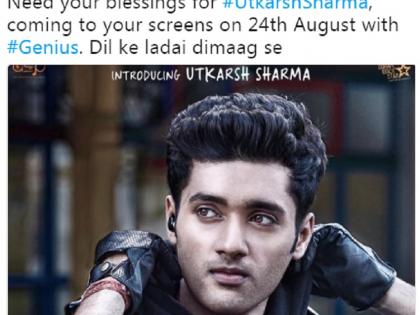 ‘ दर- एक प्रेमकथा’ आणि ‘अपने’ यासारखे सुपरहिट चित्रपट दिग्दर्शित करणारे अनिल शर्मा यांचा मुलगा उत्कर्ष शर्मा बॉलिवूड डेब्यूसाठी तयार आहे. केवळ तयारच नाही तर त्याच्या डेब्यू सिनेमा ‘जीनिअस’चे पहिले पोस्टरही लॉन्च झाले आहे. ‘गदर’ या चित्रपटात उत्कर्षने सनी देओलच्या मुलाची भूमिका साकारली होती. आता उत्कर्ष लीड हिरो म्हणून बॉलिवूडमध्ये एन्ट्री घेतोय.