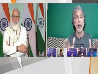 Aajtak ने दिलेल्या वृत्तानुसार, यादरम्यान पंतप्रधान मोदी यांनी मिलिंद सोमणसोबत बोलताना गंमतही केली आणि म्हणाले की, 'मेड इन इंडिया मिलिंद'. पंतप्रधान मोदींनी मिलिंद सोमणला विचारले की, सोशल मीडियात तुमच्या वयाची फार चर्चा होत असते. तुमचं खरं वय काय आहे? यावर मिलिंदने उत्तर दिलं की, माझ्या आईचं वय ८१ वर्षे आहे. तरी ती खूप फिट आहे. माझ्यासाठी ती उदाहरण आहे. माझं हे लक्ष आहे की, तिच्या वयात मी सुद्धा तिच्यासारखं फिट रहावं.