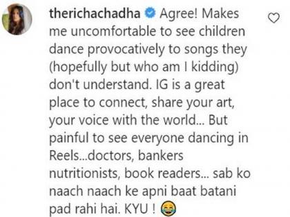 गजराज राव यांनी शेअर केलेल्या या व्हिडीओवर अभिनेत्री रिचा चड्ढा हिने देखील कमेंट केली आहे. ‘ मी सहमत आहे. अर्थ माहित नसतानादेखील काही मुलं या गाण्यावर डान्स करताना दिसतात आणि त्रास होतो. इन्स्टाग्राम हे तुमची कला दाखवण्यासाठी, जगाशी संवाद सांधण्यासाठी उत्तम ठिकाण आहे. पण डॉक्टर, बँकर, न्यूट्रीशियनिस्ट, बुक रीडर सगळेच रिल्समध्ये नाचताना दिसतात. सब को नाच नाच के अपनी बात बतानी पड रही है, क्यों?,’ अशी कमेंट तिनं केली आहे.
