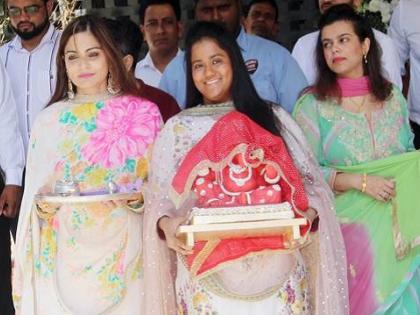 सलमान खानच्या बहिणी अर्पिता आणि अलविरा यांनी बाप्पाला घरी आणले.