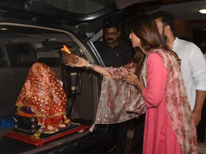 शिल्पा शेट्टीने उत्साहात बाप्पांचे स्वागत केले.