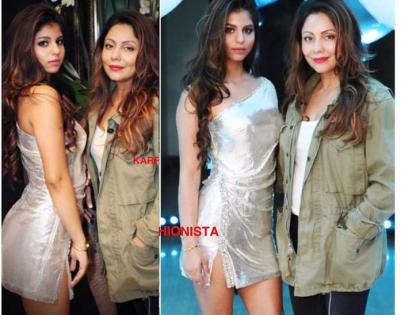 ब लिवूडचा किंग शाहरूख खानची मुलगी सुहाना खानचे काही फोटोज् सध्या सोशल मीडियावर मोठ्या प्रमाणात व्हायरल होत आहे. आता तिचे आणखी काही फोटोज् व्हायरल होत असून, त्यामध्ये ती मम्मी गौरी खानसोबत पोज देताना बघावयास मिळत आहे. एकीकडे गौरी फॉर्मल लूकमध्ये बघावयास मिळत आहे. तर सुहाना सिल्व्हर रंगाच्या वन साइड आॅफ शोल्डर शॉट स्लिट ड्रेसमध्ये बघावयास मिळत आहे. हा फोटो लंडनमधील एका प्रायव्हेट क्लबमधील आहे. याठिकाणी सुहाना तिच्या मैत्रीण आणि मॉमसोबत पोहोचली होती.