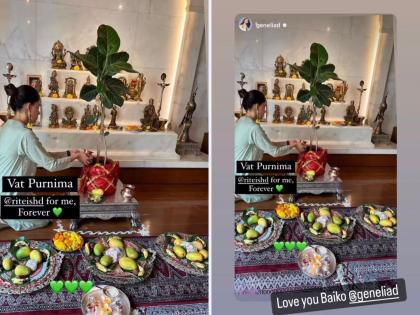 जिनिलिया देशमुखने इंस्टाग्राम स्टोरीवर शेअर केलेल्या फोटोत ती घरात वडाच्या झाडाच्या फांदीची पूजा करताना दिसत आहे. या बॅकग्राउंडला रितेश-जिनिलियाचा चित्रपट वेडमधील सुख कळले हे गाणे वापरण्यात आले आहे. हा फोटो शेअर करत तिने रितेश देशमुखला टॅग करत लिहिले की, वटपौर्णिमा. रितेश देशमुख तू माझ्यासोबत कायम असणार आहे. रितेशने देखील जिनिलियाचा हा फोटो शेअर करत लव्ह यू बायको अशी कमेंट केली आहे. या पोस्टला चाहत्यांची खूप पसंती मिळताना दिसते आहे.