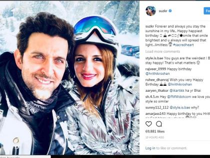 सुजैनच्या या पोस्टला ८ तासांत ५८ हजारांवर लाईक्स मिळाले आहेत. शेकडो लोकांनी हृतिकला वाढदिवसाच्या शुभेच्छा दिल्या आहेत.